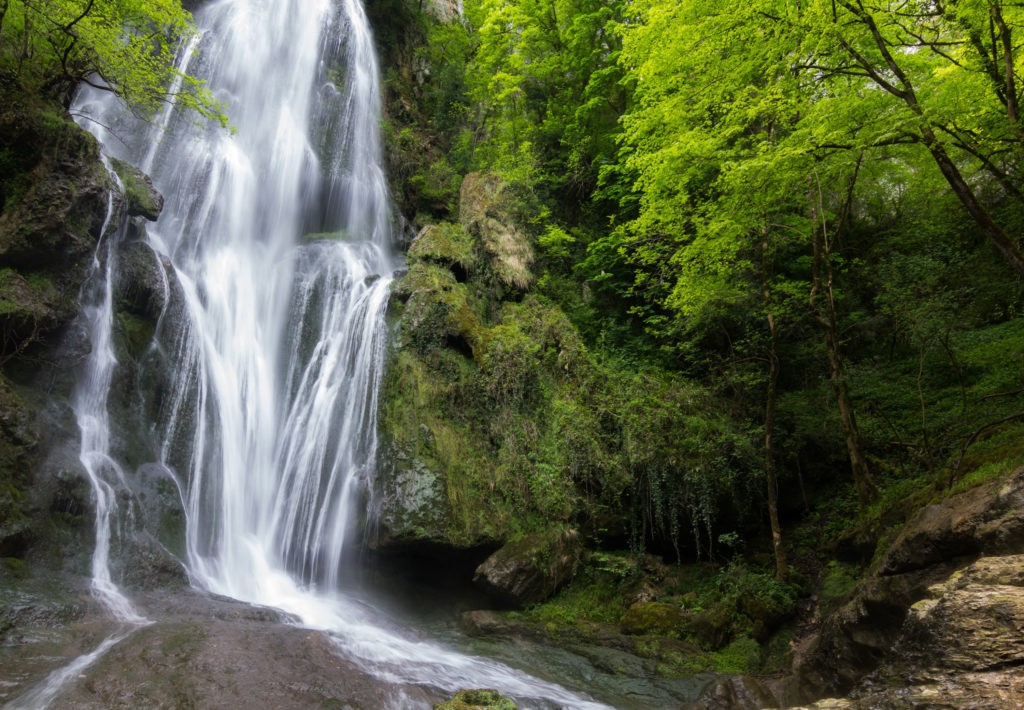 De waterval is ongeveer dertig meter hoog en stroomt als een lichtgevende sluier langs de rotswand naar beneden. We stoppen instinctief, betoverd door de schoonheid van de plek. Het minerale decor, de rustige kracht van het water en de verticale wanden creëren een grandioze sfeer. Een echte natuurkaart.